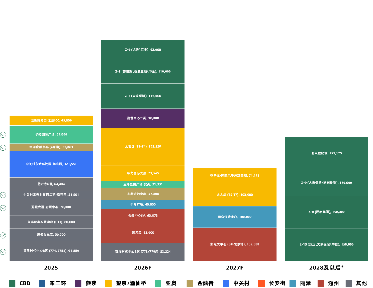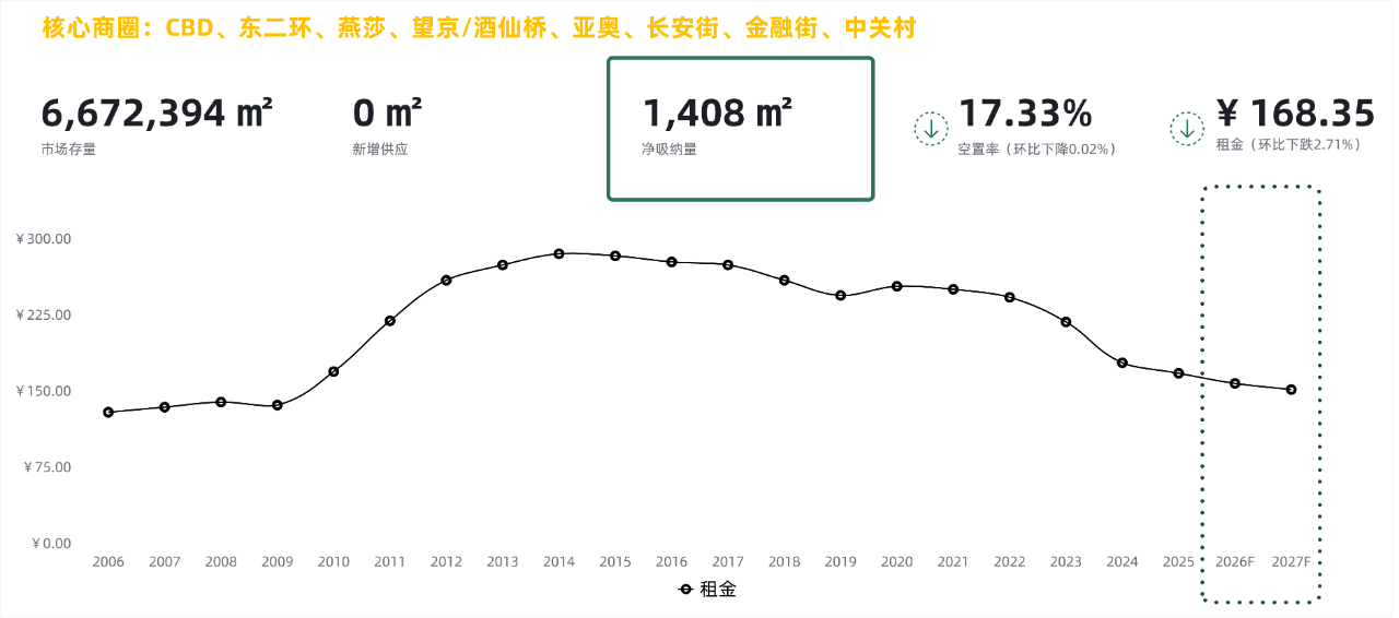北京寫字樓市場(chǎng)在近兩年將有接近170萬(wàn)平方米存量投入市場(chǎng),在這當(dāng)中甲級(jí)寫字樓占比超過(guò)整體的七成,達(dá)到120萬(wàn)平方米;且核心商圈多個(gè)細(xì)分市場(chǎng)將在2025年內(nèi)釋放優(yōu)質(zhì)存量投入市場(chǎng),供給端將有顯著的上升態(tài)勢(shì),預(yù)測(cè)空置率將會(huì)受此影響承壓上行。成交租金將受市場(chǎng)競(jìng)爭(zhēng)的影響,延長(zhǎng)探底周期;而現(xiàn)階段的租金回調(diào)不斷在為后續(xù)價(jià)格調(diào)整創(chuàng)造空間,短期內(nèi)市場(chǎng)還將存在高性價(jià)比的窗口期,匹配企業(yè)不斷增長(zhǎng)的職場(chǎng)環(huán)境改善需求。